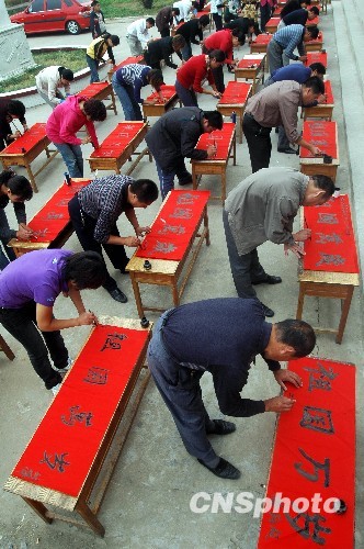 图:山东百名教师同书“祖国万岁”迎华诞(2)