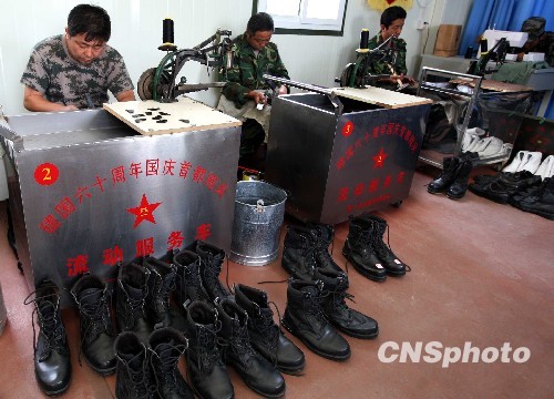 阅兵村中的“修鞋店”也正是“生意兴隆”时期。中新社发 宋吉河 摄
