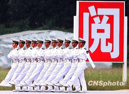 图为海军方队正在紧张训练。中新社发 宋吉河 摄
