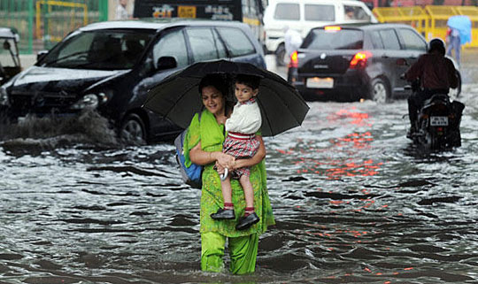 图:大雨袭击 印度首都交通瘫痪(3)