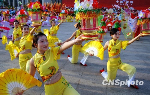 图:福建龙岩万人表演“采茶灯”创纪录(2)