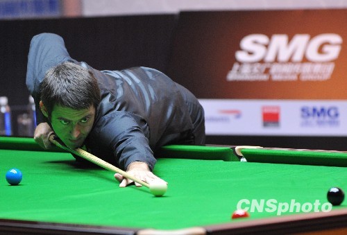 9月10日晚,在2009斯诺克上海大师赛第2轮的比赛中,奥沙利文以5比2轻取傅家俊,成功晋级八强。中新社发 汤彦俊 摄