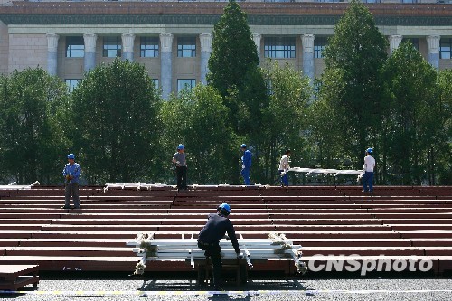 图:北京天安门搭建临时观礼台迎国庆(3)
