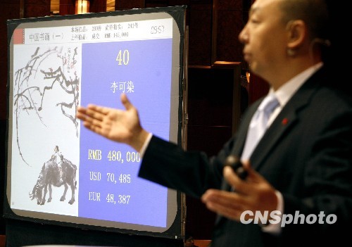 李可染《春牧图》在拍卖会开场以537,600元成交,带动了当日拍卖的第一个小高潮。中新社发 杨可佳 摄