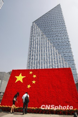 两万朵玫瑰绢花编织"五星红旗"迎国庆60周年(3)