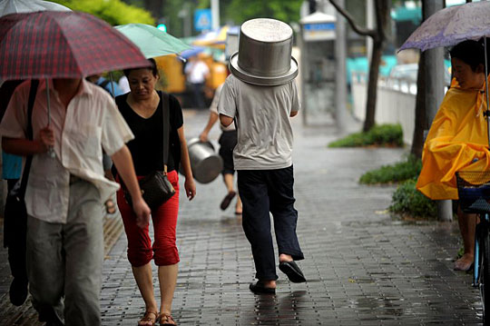 9月14日下午,深圳上步路,突然而至的大雨让行人猝不及防。陈以怀/CFP