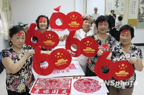 9月15日,安徽省繁昌老年大学剪纸艺术班几位同为60岁的共和国同龄人在表演剪纸技艺。国庆将至,繁昌老年大学剪纸艺术班学员翟晓玲等几位共和国的同龄人准备用60幅剪纸作品,向建国六十周年献礼。