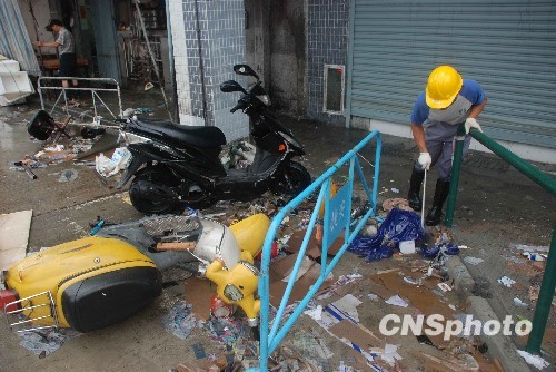 九月十五日上午,台风“巨爵”横扫澳门,留下满城狼藉。