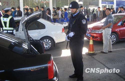 图为公安人员联合检查进京车辆。中新社发 翟羽佳 摄