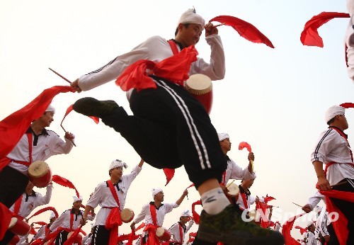 组图:国庆游行表演安塞腰鼓方队在京合练(2)
