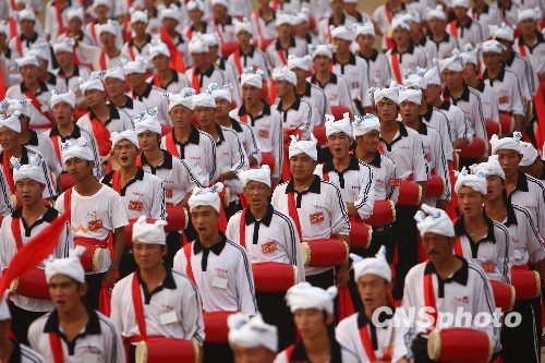 组图:国庆游行表演安塞腰鼓方队在京合练(4)