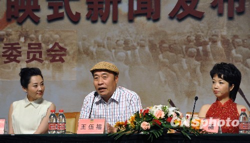 9月17日,众多两岸三地明星参演的电影《建国大业》举行重庆首映式。据称,重庆首映式是该剧在中国内地8个城市举行的最后一个首映式,剧中部分主要演员也来渝宣传该片。图为剧中扮演宋庆龄、朱德、邓颖超的演员许晴(左)、王伍福(中)和黄薇。中新社发 曹多然 摄