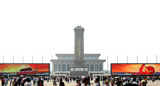 2009年9月17日上午,天安门广场中心区的两组大型LED显示屏进行试播。记者了解到,9月18日国庆演练之后,显示屏将正式投入使用。显示屏将在庆典活动和节日期间播放视频宣传片。
