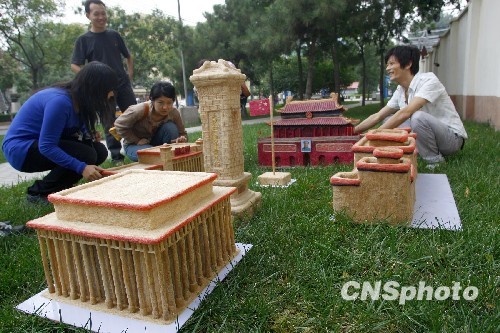 9月18日,北京一位时尚发型设计师正在展示头发丝作品,吸引不少路人的目光。为迎接祖国60华诞,四川青年理发师黄鑫用40多公斤碎头发制作了一个微型“天安门广场”全景模型,历时近一年时间才完工。此前,他曾为北京奥运献上头发丝制作的“鸟巢”、“水立方”、“福娃”等,赢得国内外游客的好评。中新社发 郑雄增 摄