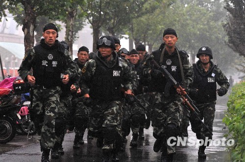 组图:郑州警方雨中举行国庆安保反恐演习(8)