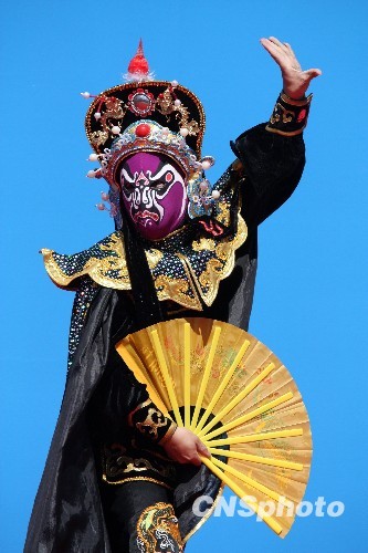 19日上午11时,筹备多时的“中秋明月祭·大阪2009”大型文艺活动在日本大阪市中心难波宫遗址公园隆重开幕。中国川剧中的“变脸”在明月祭上引起了日本观众对中国戏曲文化的浓厚兴趣。中新社发 关妍 摄