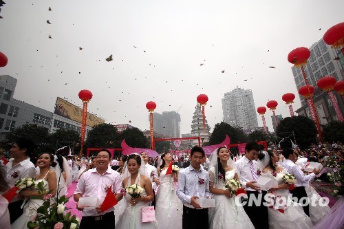 图:四川60对新人集体“拜堂”迎国庆(4)