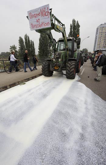 德法奶农莱茵河倾倒牛奶抗议奶价过低(3)
