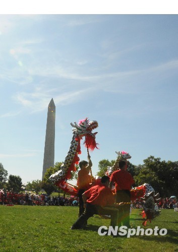 美白宫外公共草坪升起五星红旗庆新中国60华诞(8)