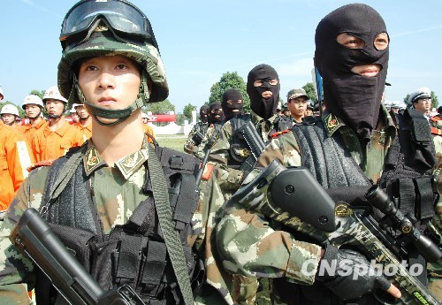 9月20日,“2009迎国庆保稳定反恐处突演练”在苏州举行,近千名刑警、武警、特警、消防官兵等多个警种参加了搏击技术操、反劫持、特警防爆治爆、反恐追剿等演练。据了解,通过此次大演练旨在提高城市防范和应对恐怖事件的应急反应、组织指挥、区域协作和联动作战的能力。同时,以检验和提高各兵种反恐处突的实际作战能力。 中新社发 苏民 摄