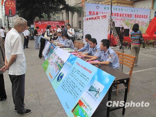 9月22日是“无车日”,安徽省安庆市举办“2009年中国城市无车日活动”,倡议广大市民,在“无车日”这一天,能够选择公交车、自行车、步行等方式出行,共同改善城市的人居环境。中新社发 艾裴 摄