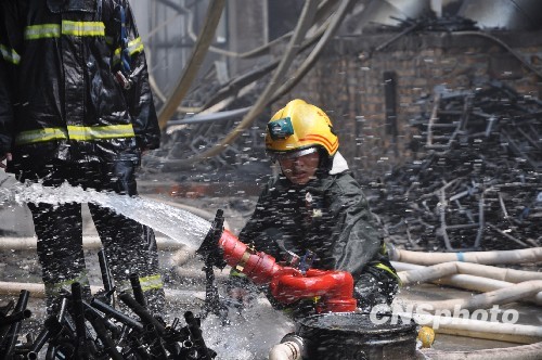 9月22日中午12时许,广西玉林市云良路一电动车配件仓库突发大火,滚滚浓烟笼罩着整个厂区,5公里外都可看到,而仓库已经完全被大火烧塌。接警后,玉林市18名消防官兵佩戴空气呼吸器深入火场内部灭火,2个多小时后大火被扑灭。目前火灾原因及损失正在调查之中。中新社发 张希友 摄