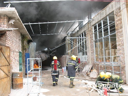广西玉林一仓库突发大火 消防官兵紧急扑救(2)