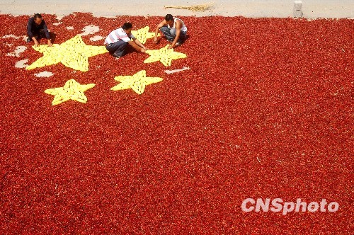 组图:农民用玉米红辣椒拼国旗迎国庆(2)