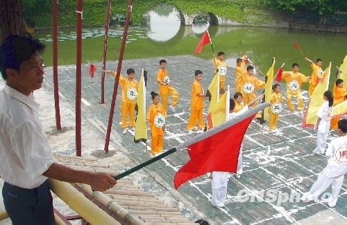 图:广东举办人体象棋大战 习武少年当棋子(2)