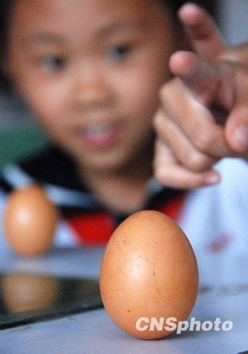 图:山东滨州小学生秋分玩“竖蛋”(3)