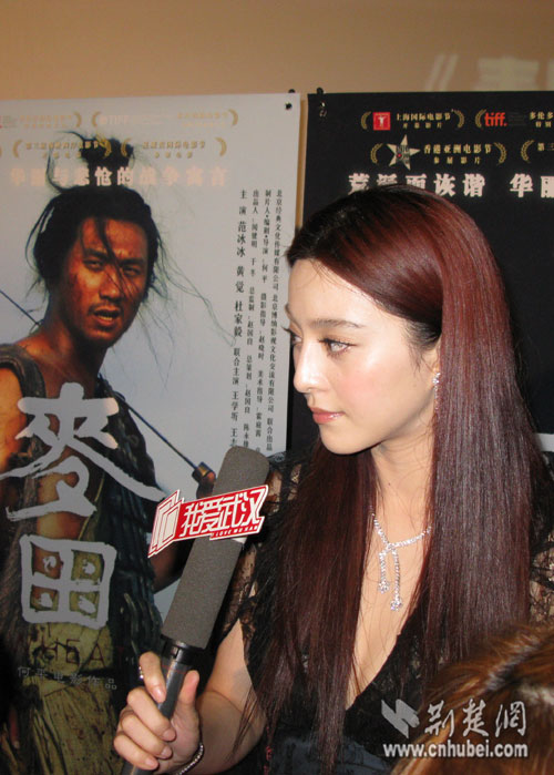 范冰冰V领蕾丝装亮相《麦田》点映礼(7)