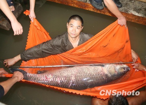 图:四川广安嘉陵江现1.61米特大青鱼(3)
