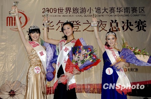 二十五日晚,2009世界旅游小姐大赛华南赛区总决赛在广东省东莞市举行。来自华南地区的三十五名选手参加角逐冠、亚、季军和十佳模特。