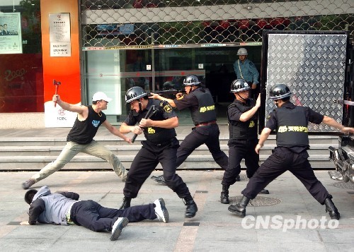 杭州警方举行运钞车安全防控演练。中新社发 施健学 摄