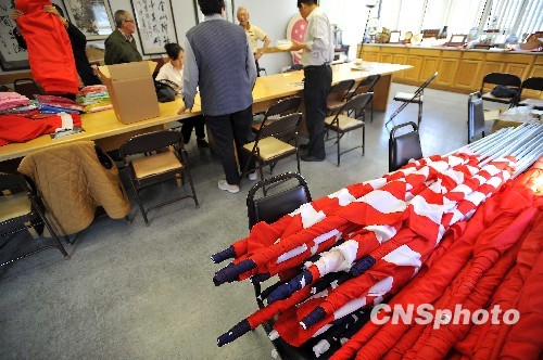 美国旧金山华人华侨迎新中国六十华诞游行活动准备就绪。中新社发 陈钢 摄