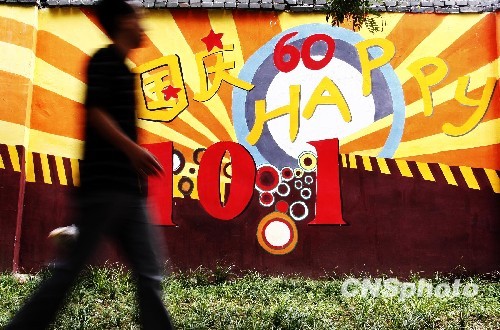 “国庆文化墙”涂鸦现身北京。中新社发 郑雄增 摄