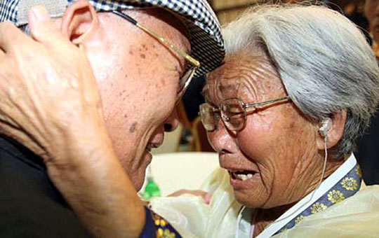 一对离散姐弟在朝鲜一侧的金刚山地区会面。