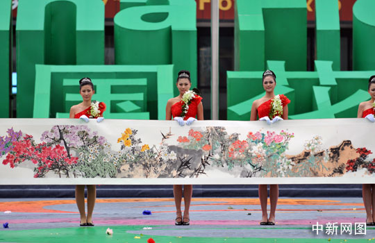 图:巨幅国画长卷亮相花博会 (2)