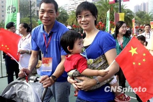 图为一家三口兴致勃勃地参加活动。中新社发 张勤 摄