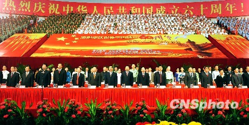 河南洛阳唱红歌迎国庆。中新社发 高山岳 摄