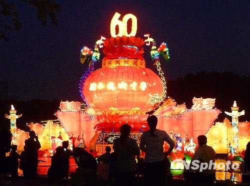 9月26日晚,第四届“龙潭映月”彩灯文化节在北京龙潭湖公园拉开帷幕。30组各类彩灯将龙潭湖公园妆扮的色彩斑斓,美丽醉人,喜迎建国60周年国庆佳节的到来。中新社发 玉龙 摄