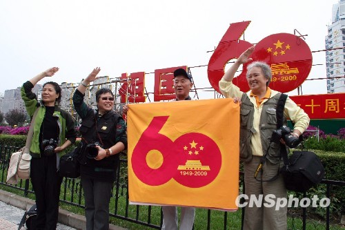 共和国同龄人相聚北京天安门。中新社发 胖美云 摄