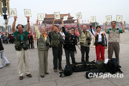 共和国同龄人相聚北京天安门。中新社发 胖美云 摄