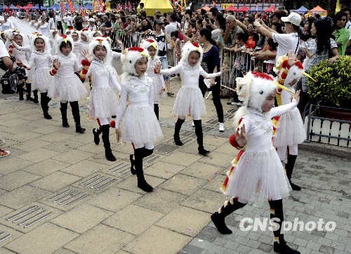 图为香港小朋友表演的鹤舞吉祥。中新社发 张勤 摄