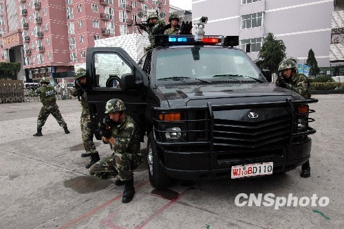温州边防特警队员进行目标围捕战术演练。中新社发 吴水斌 摄