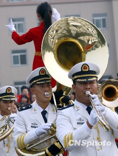 参加国庆60周年庆典的军乐团、民乐团、合唱团举行最后一次大型合练。中新社发 郑雄增 摄