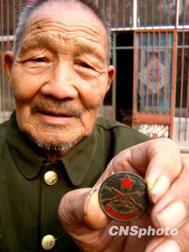 2009年9月27日,山东滨州惠民县的90岁老战士赵清河,怀揣“渡江胜利纪念章”与“淮海战役纪念章”,希望找到失散多年的战友们,与他们一起欢度建国60年大庆。