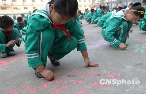 图:三千名小学生赛“地书”迎国庆(2)