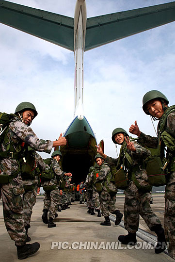 空降兵某部在黄河上空进行空降训练。李爱明 摄
