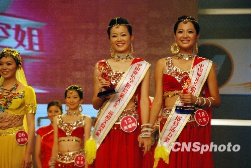 冠军周珊珊和季军仉乐同时获得最甜美微笑奖和最具活力奖。中新社发 袁宏伟 摄